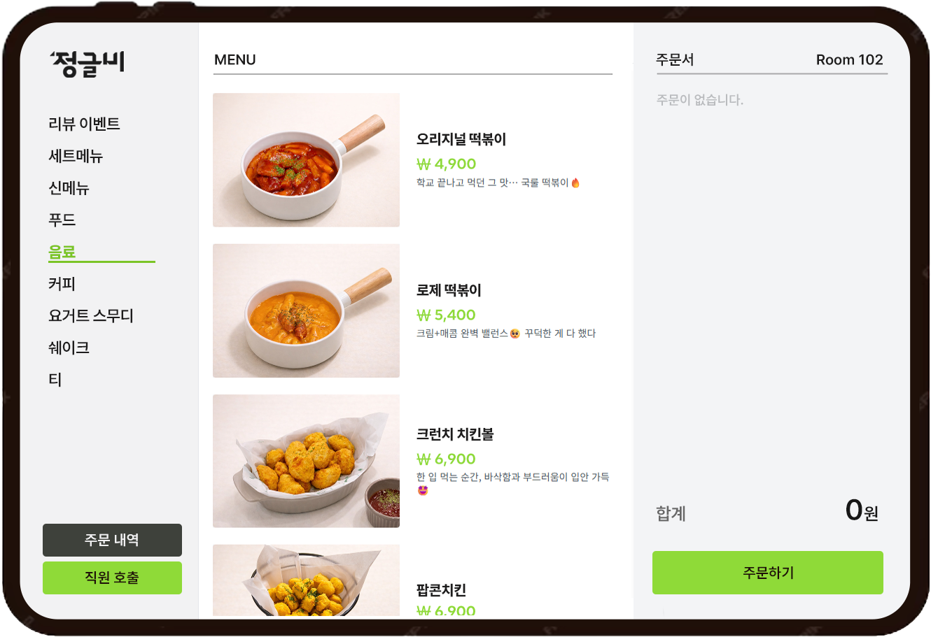 혼자서도 운영이 안정적일 수 있게 구성된 정글비 메뉴는