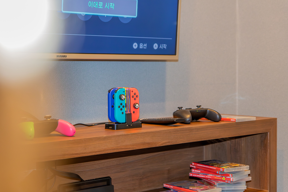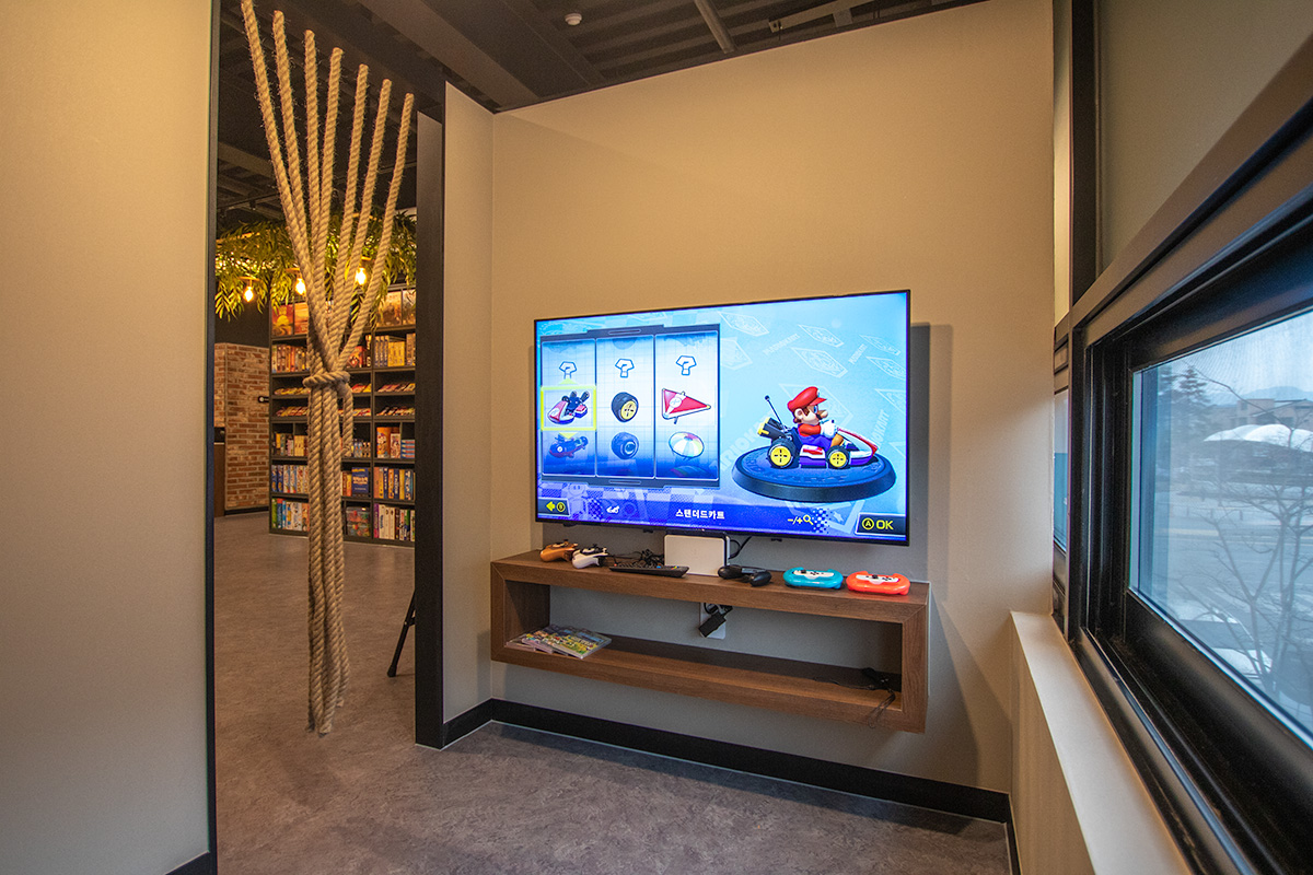 정글비의 닌텐도 룸은 보드게임 사이의 흐름을 잠시 바꾸고 싶을 때,혹은 모두가 같은 화면을 보며 가볍게 즐기고 싶을 때 선택할 수 있는 공간입니다.